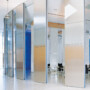 Rooms of different types and usage can be divided, reduced in size, enlarged, have their proportions modified and thus be adapted on demand to the different number of people using them. From the small conference room to the large exhibition hall. This flexibility generates a special atmosphere, characterized by creative aesthetics, and enhanced by a wide range of surface materials and finishes.